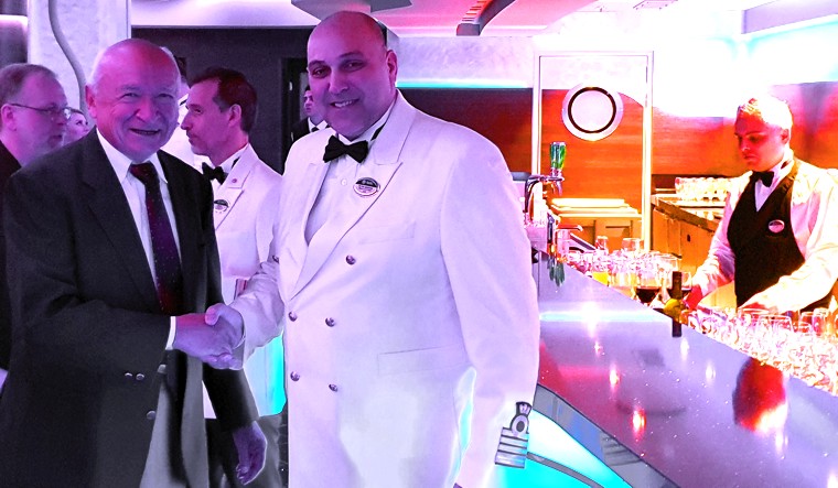 After leaving the Azores, we sailed southwest across the empty Atlantic for five days. There was plenty of time for meetings, reading, entertainment, and sunbathing on board. Captain Pietro-Paulo invited the frequent flyers for a cocktail. I had the opportunity to meet him personally, introduce myself, and ask for a photo with him. When I mentioned my traveller's output and that he is my captain number 49, he congratulated me and expressed hope that we would meet again: |