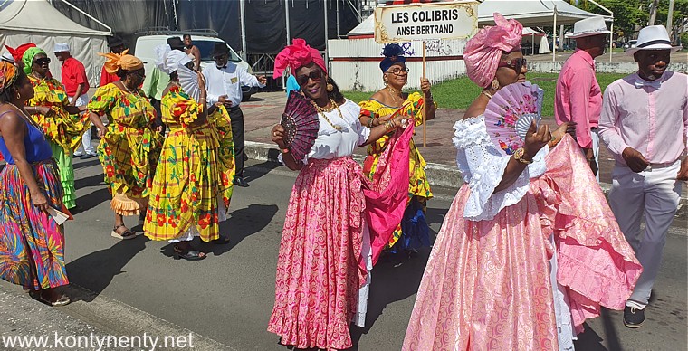 After leaving the cathedral, another pleasant surprise awaited me: a procession of residents from the island's various municipalities, dressed in traditional Caribbean costumes, danced and sang through the main square of Guadeloupe's capital. There was plenty to see and hear: |