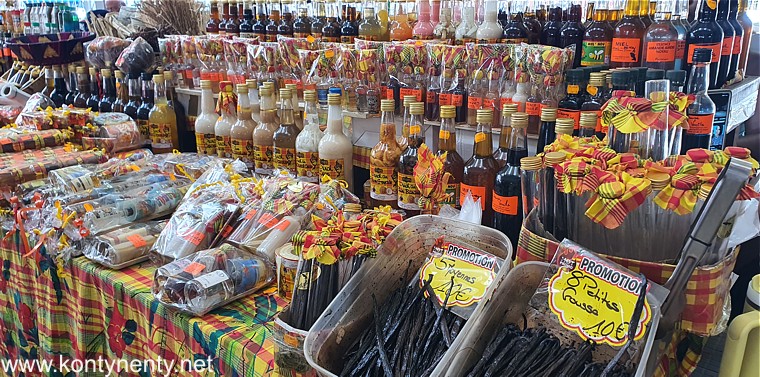 In the old but nicely restored market hall hidden behind the cathedral you can find not only artistic handicrafts, but also home-made juices, punches and spices. Notice the black sticks of real vanilla at the bottom of the photo: |