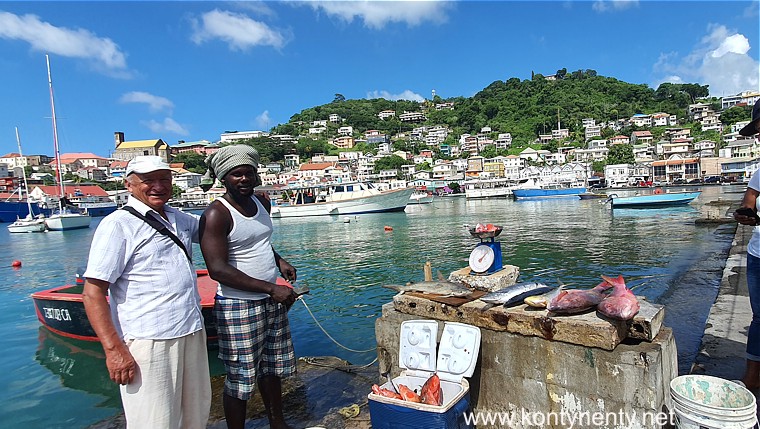 A w starym porcie dzieje się życie: dwa razy dziennie odpływają promy na sąsiednią wyspę Cariacou, właściciele motorówek nawołują na przejażdżkę, rybacy sprzedają prosto z łodzi kolorowe ryby: |