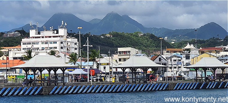 Z tyłu za wiatami przystani promowej majaczyły najwyższe szczyty Martyniki. Płynęliśmy na druga stronę zatoki, gdzie w Anse Mitan zarezerwowałem zaciszny i niedrogi apartament przy plaży. Tam mieliśmy odpoczywać z dala od gwaru wielkiego statku i czekać na odlot do Europy: |