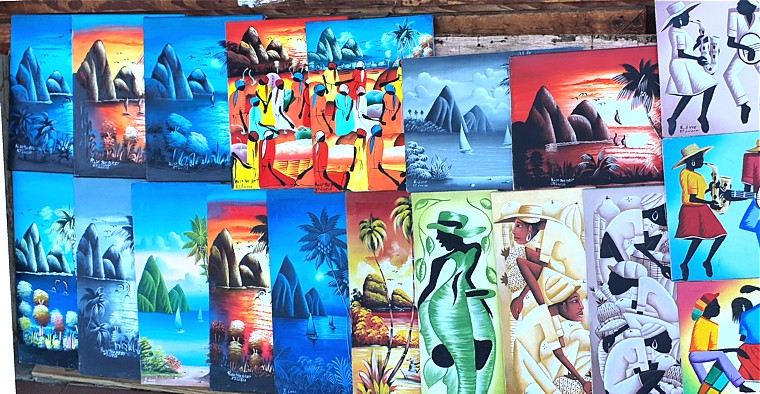 U krańca portowej zatoki w Castries rozłożył sie bazar z egzotycznymi warzywami i owocami. Turyści kupują tu plecione kapelusze chroniące przed palącym karaibskim słońcem, rzeźby z drewna i obrazy na płótnie, na których królują Pitony - wulkaniczne ostre stożki najlepiej widoczne z morza. Jest z czego wybierać: |