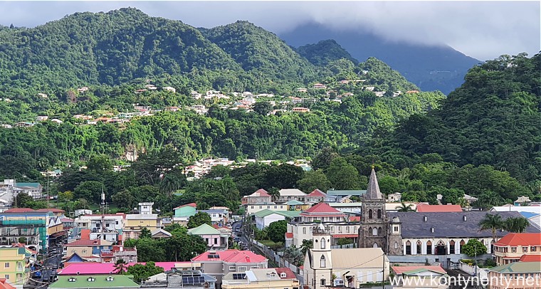 Z wyspy Antigua popłynęliśmy na jedną z biedniejszych wysp Karaibów, była to Dominika. Stolica wyspy i kraju - miasto Roseau przycupnęło na samym brzegu morza, mając w tle wspaniałe i często schowane w chmurach góry, kuszące soczystą zielenią. W tych górach ukryte są piękne wodospady i gorące źródła: |