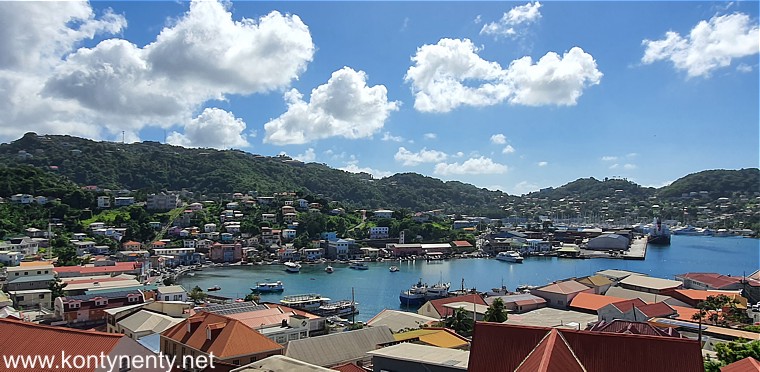 U krańca naszego rejsu czekała na mnie Grenada - wyspa przypraw, mająca ciekawa historię i zabytki. Za każdym razem, kiedy tu jestem widzę postępy w renowacji starych, kolonialnych budowli skupionych na wzgórzu nad portem i wzdłuż carenage - bulwaru okalającego zatokę starego portu. Myślę, że stolica wyspy - St Georges może być natchnieniem dla malarzy: |
