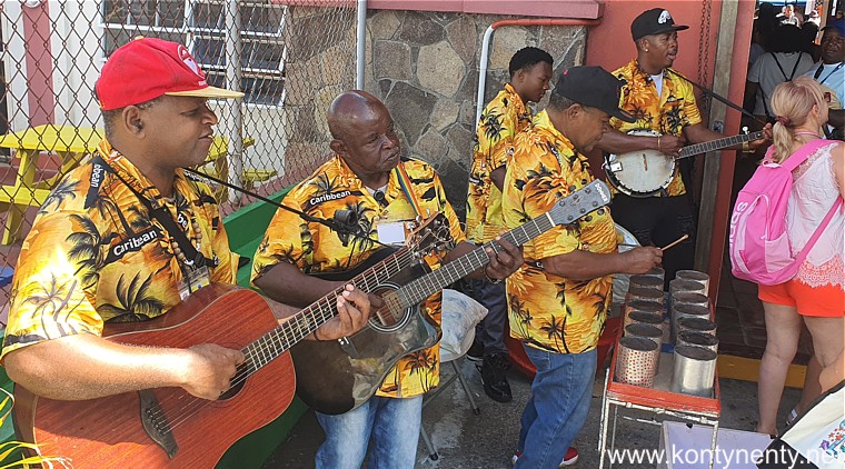Przy wyjściu z portowego terminalu czekał na nas zespół, grający typową karaibską muzykę. Solistą był pan grajacy na... stalowych kubkach. Słuchałem wielokrotnie na Karaibach muzyki wykonywanej na stalowych bębnach, ale stalowych kubków w orkiestrze dotychczas nie było... Grali pięknie... Brawo! |